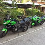By the time Phil finally arrived in Le Grand-Bornand and spotted Kyle’s Versys and Taj’s ZZR parked up it was approaching 7pm and they’d already unloaded their luggage and made themselves comfortable at Chalet Les Saytels – our home for the next couple of nights. It’s a nice enough hotel, centrally located and reasonably priced, but no secure parking, although the bikes were all safe enough parked out front.
